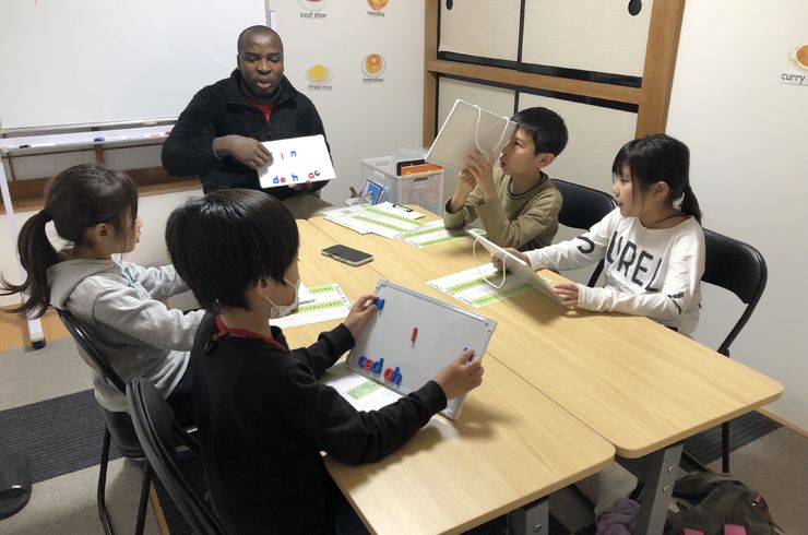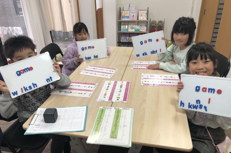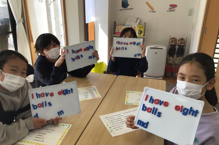 たくさんの教材とテンポのよいレッスンで子どもたちが楽しく英語を学べます。読み書きもこの時期からスタート。